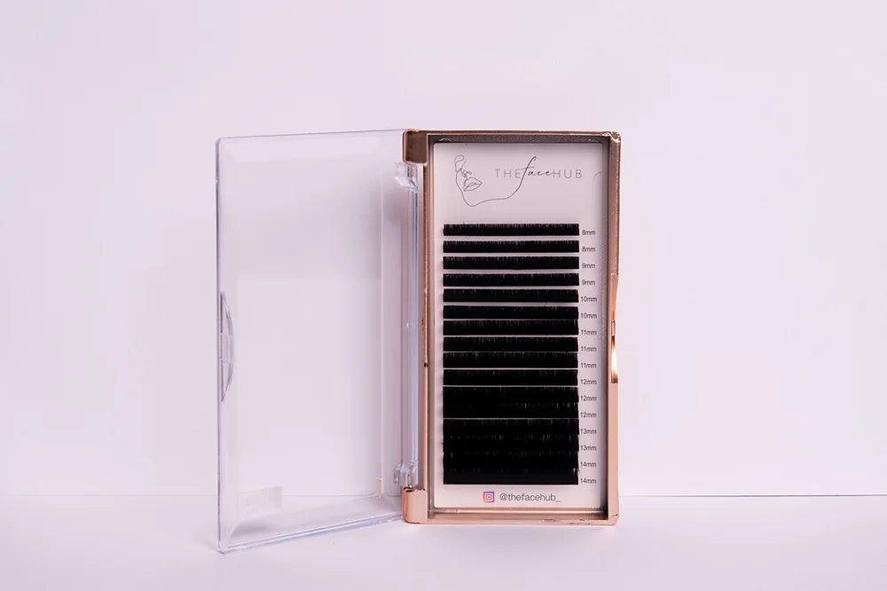 0.06 Russian Volume eyelash extensions are deep matte black and are super soft to touch. 16 rows of pure luxury with lengths ranging from 8mm-13mm. The stable curl allows for a flexible and lightweight eyelash to be placed along a stick free strip making them extra easy to pick up. Creates a voluminous, glossy, luxurious volume fan up to maximum of 7D.